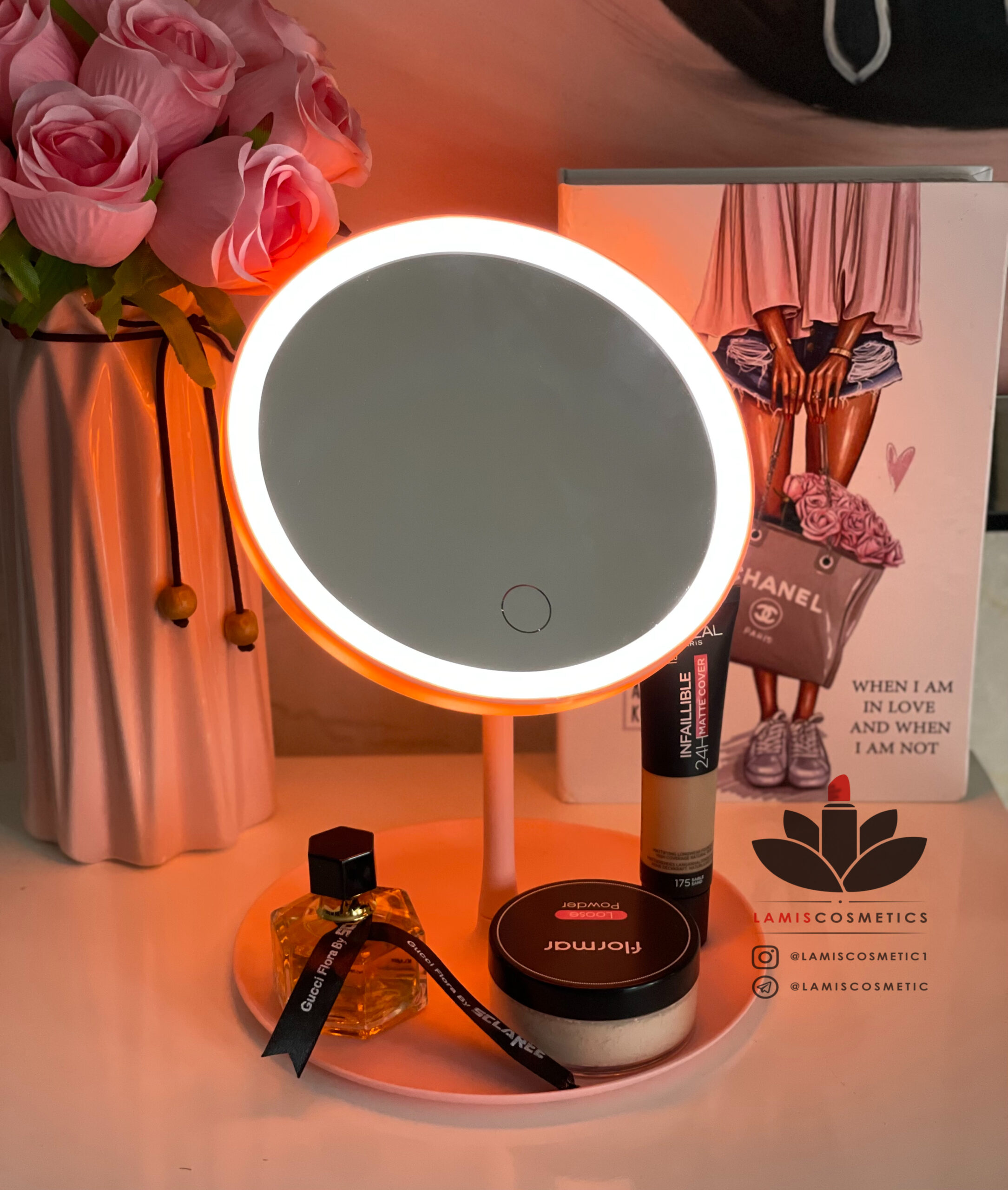 آینه آرایشی لمسی رینگ لایت دار