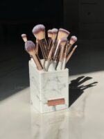 ۱۲ عدد براش صورتی خوشگل با یه استند چرمی صورتی دلبر داره
