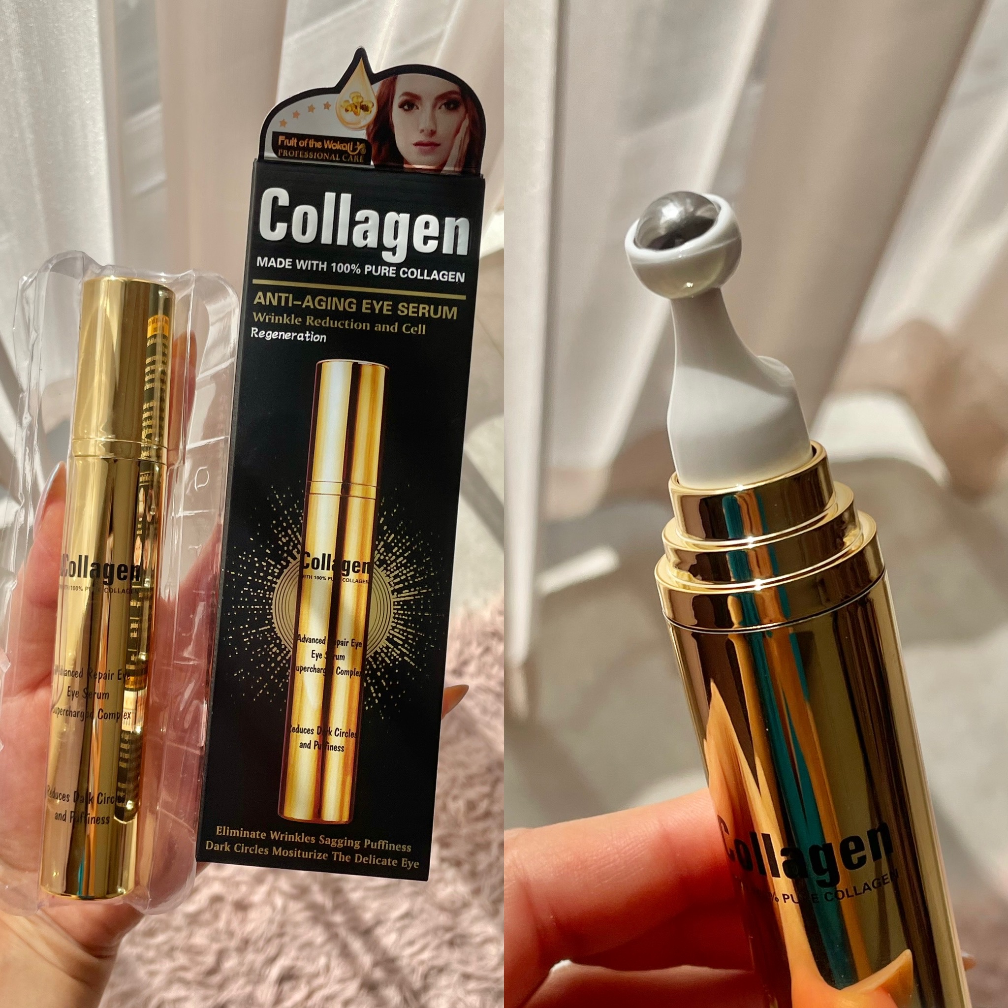 سرم ضد چروک و پیری چشم ووکالی🌸collagen Anti aging eye serum محصولی فوق العاده مؤثر و قوی علیه تیرگی و پف اطراف چشم، ضد چروک، تیرگی و نرم کنندگی به کمک گوی موجود در سر محصول با خاصیت ماساژ خنک کننده آثار تیرگی و پف را از بین برده سبب نرمی و شفافیت دور چشم میگردد. این سرم دور چشم ضد پیری با یک فناوری منحصر به فرد در مورد نفوذ عمیق و تحویل اجزای فعال به سلولهای پوست باعث می شود تا علائم پژمردگی پوست به طور موثری اصلاح گردد و سلولها به طور طبیعی در برابر تغییرات ناشی از افزایش سن مقاومت کنند. انفضا ۲۰۲۹ و حجم زیاد ۲۰گرم