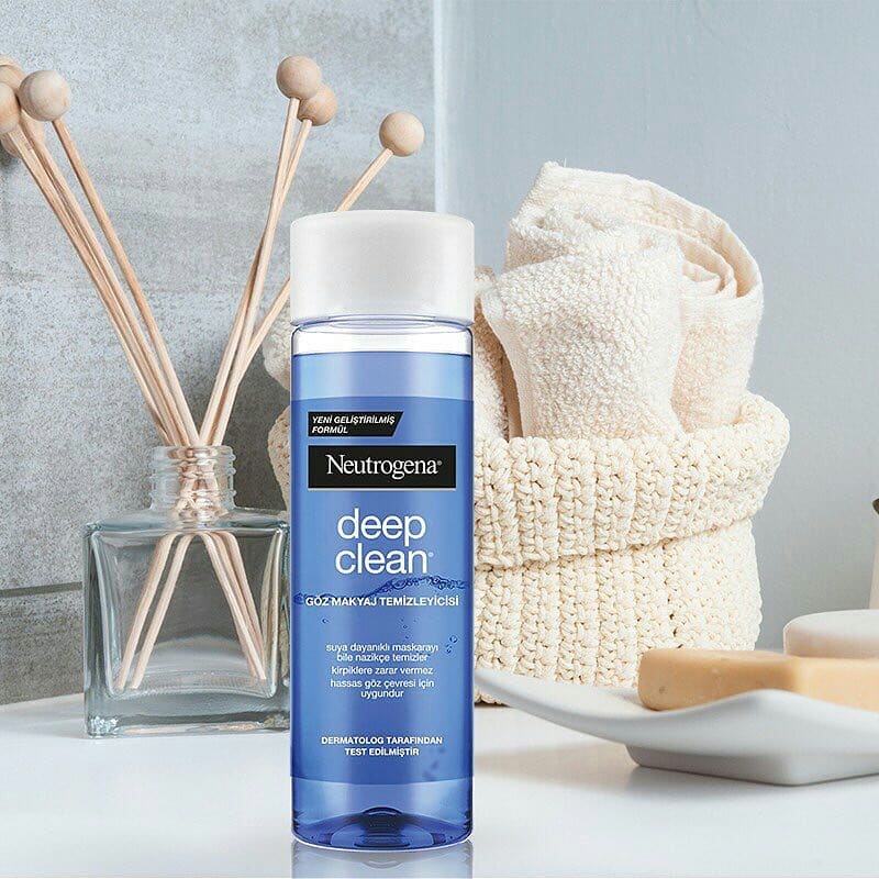 محلول پاک کننده آرایش چشم neutrogena مدل Deep Clean بدون آسیب به بافت حساس دور چشم و مژه ها ، با فرمولاسیون ملایم خود حتی آرایش ضد آب را پاک می کند. با استفاده از چشم پاک کن نوتروژینا بدون نیاز به مالیدن پد بر روی پوست آرایش چشم خود را می توانید به راحتی پاک کنید. اگر از لنزهای آرایشی و یا طبی استفاده می کنید این چشم پاک کن گزینه بسیار عالی ای می باشد.