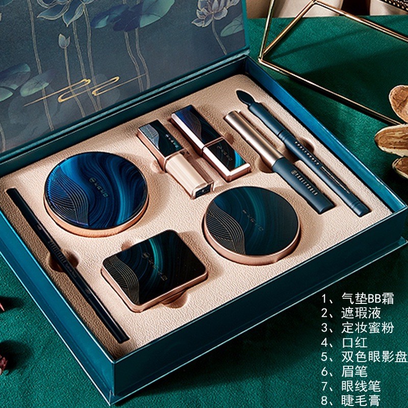رژلب جامد، کانسیلر مایع، پودربیک، ب ب کرمو کوشن، ریمل، خط چشم، دیفاینر ابرو، پلت سایه چشم شاین و هایلایتر