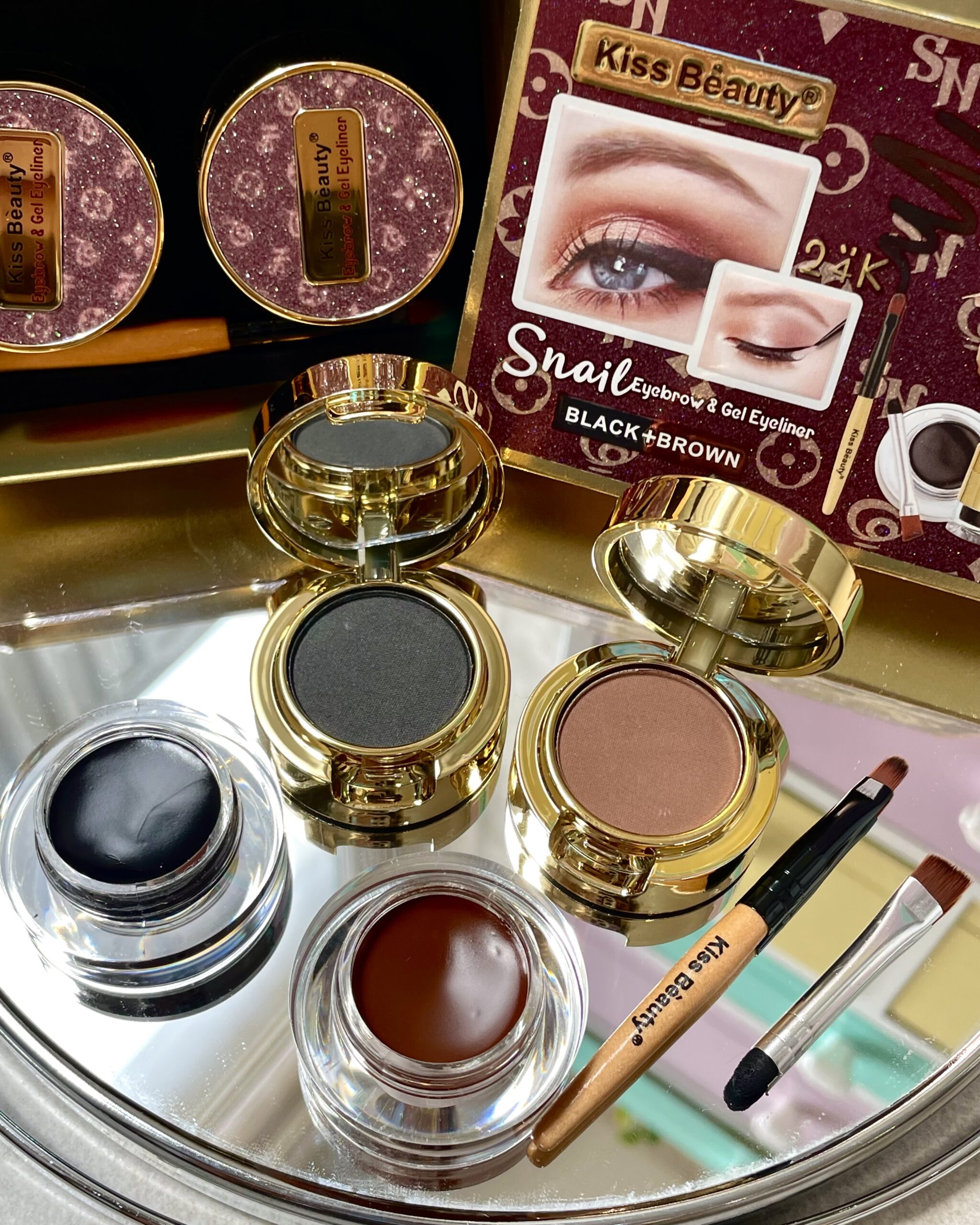محصولات : خط چشم ژله ای و اکوا ابرو مشکی، خط چشم ژله ای و اکوا ابرو قهوه ای، سایه ابرو و چشم قهوه ای و سایه ابرو و چشم مشکی.اینه هم داره🌝