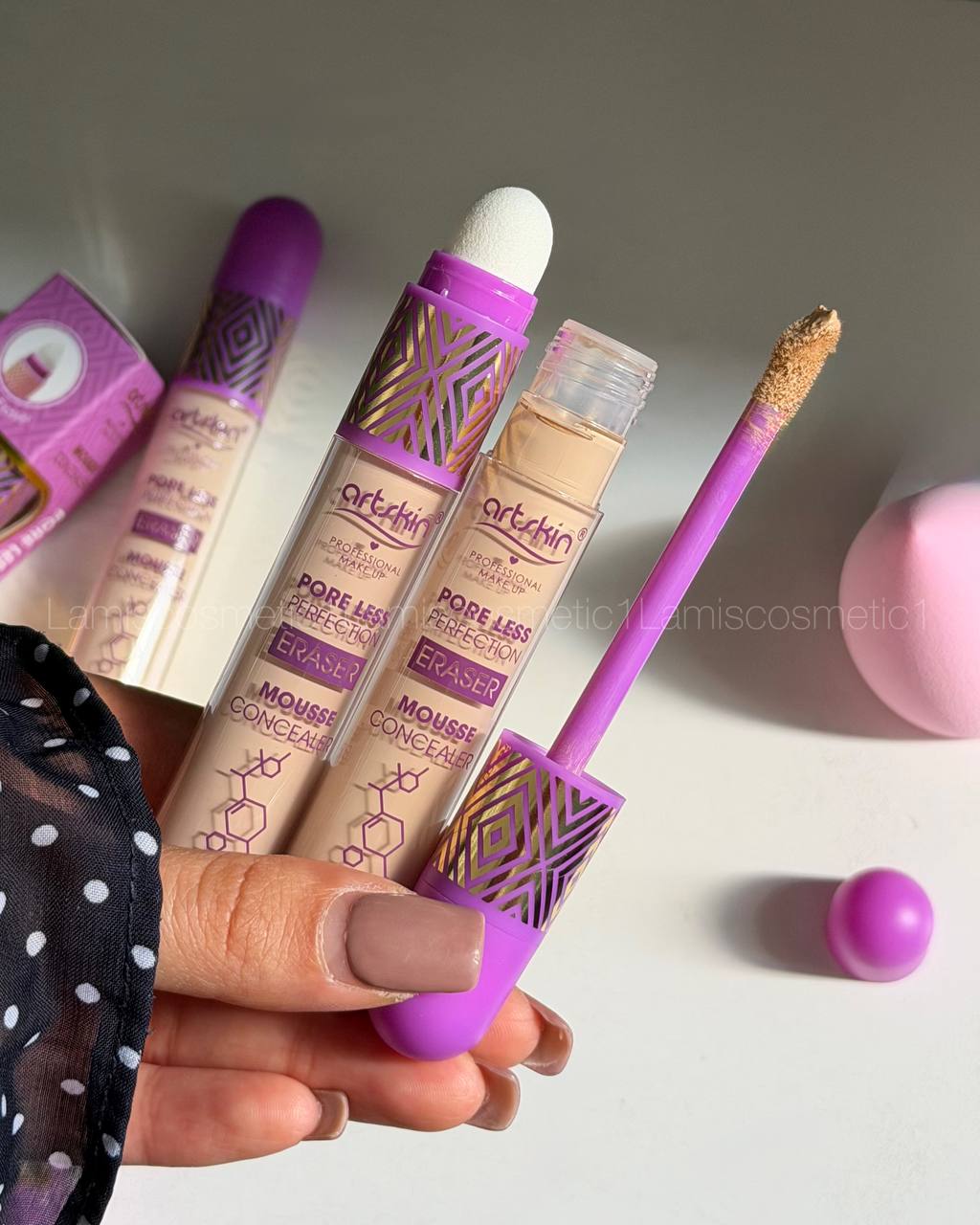 دوتا محصول تو یه محصول : هم کانسیلر داری هم پد مخصوص خودش و که راحت و تمیز مواد و گوشه چشمت فید کنی😇